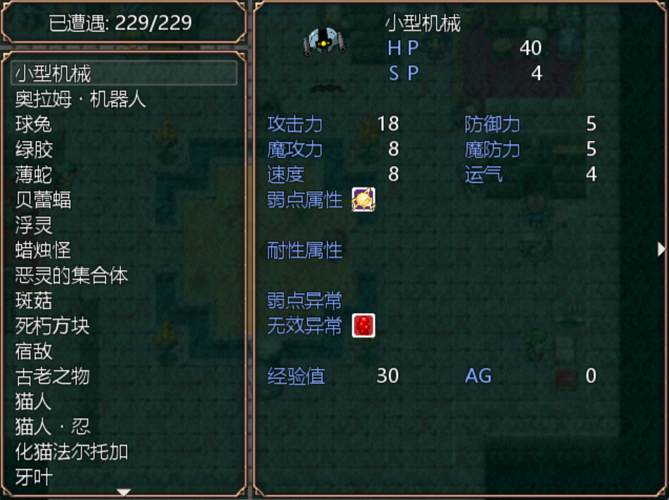 初见的时候最震惊的就是图鉴里229种的怪,而且不是素材包,是作者自己画的,虽然画风简单但是还是要佩服作者(也可能是旧作的基础)。
