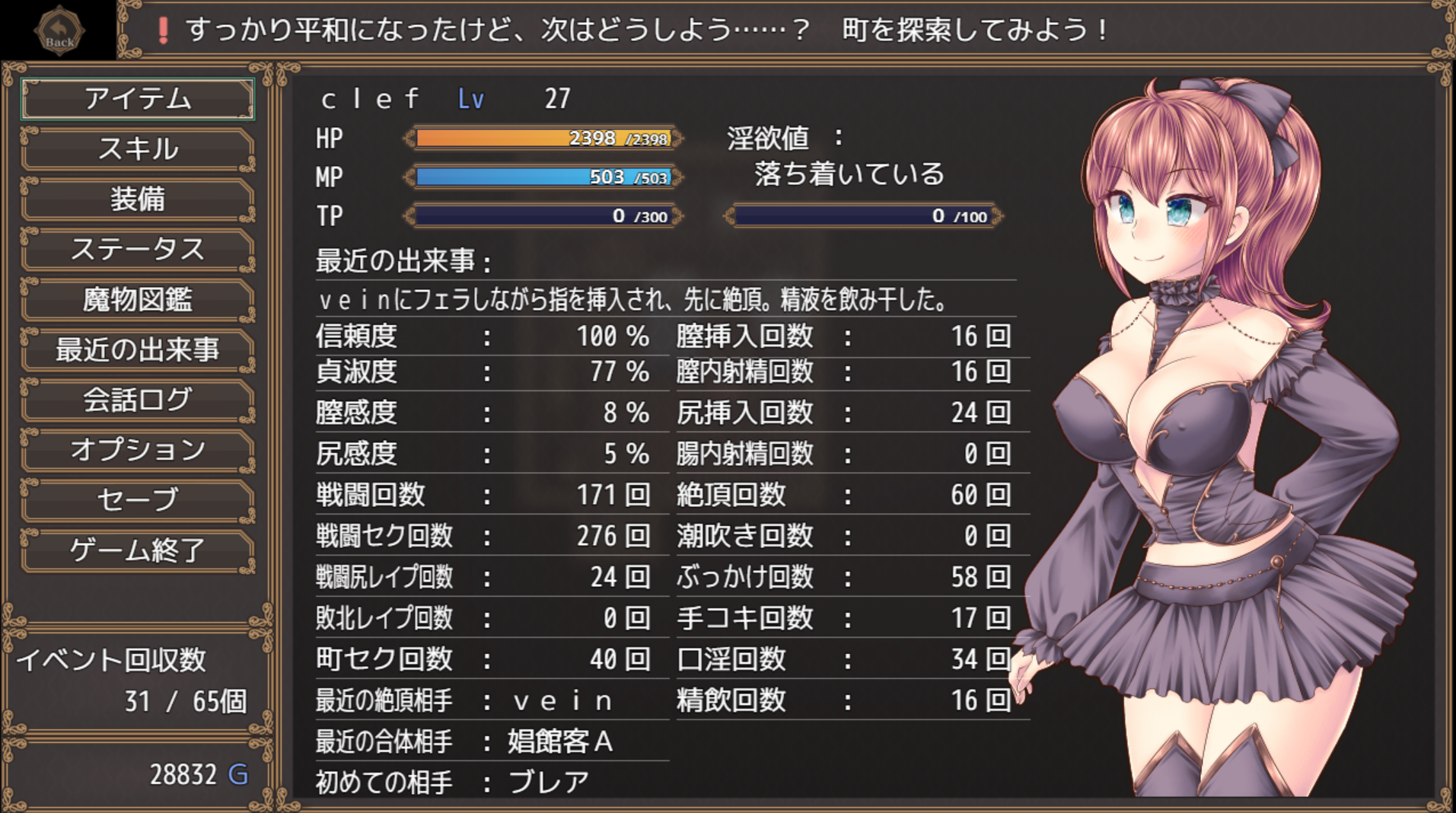 很可惜的是作为游戏核心玩法的部分几乎完全没办法展示或者说明,大家可以说我井底之蛙,但我还是要说小蝶在我玩过的战斗H系统中是最好、最完善的一部,诚心推荐给对立绘要求没有那么高的绅士淑女。(与其说高度最高,倒不如说传统回合制战斗最爽快)